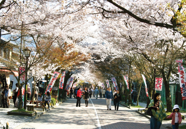 春の訪れとともに渓流沿いに山桜、吉野桜、枝垂れ桜など数多くの種類の桜が、一斉に咲き誇ります。 桜の花が咲く様子を遠くから見るとまるで霞がかったようにみえるところからいつしか「霞間ヶ渓」と呼ばれるようになりました。
